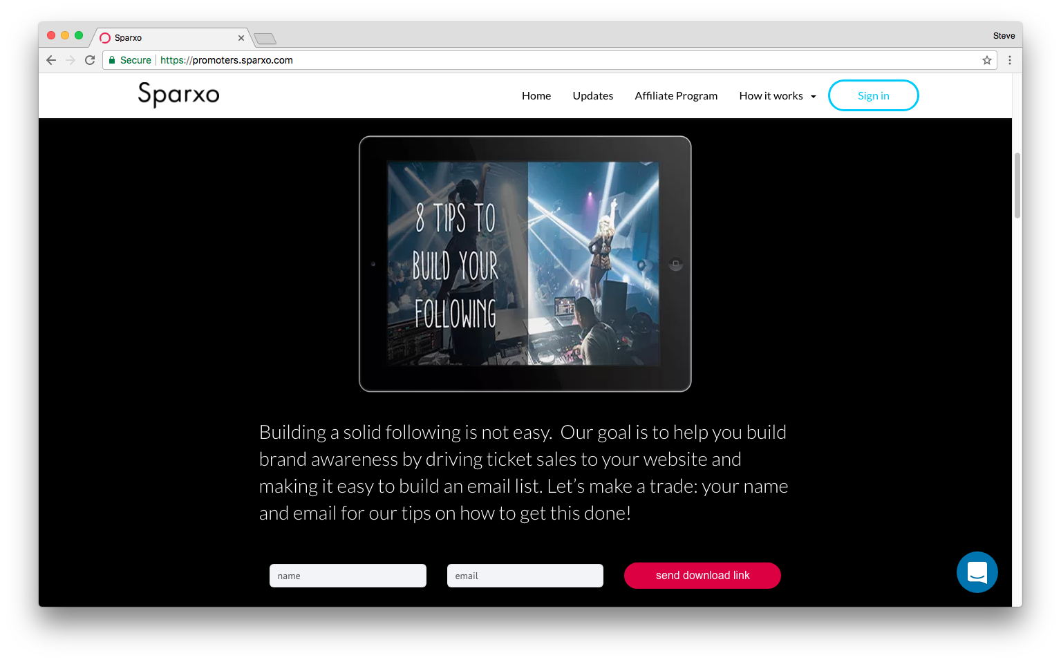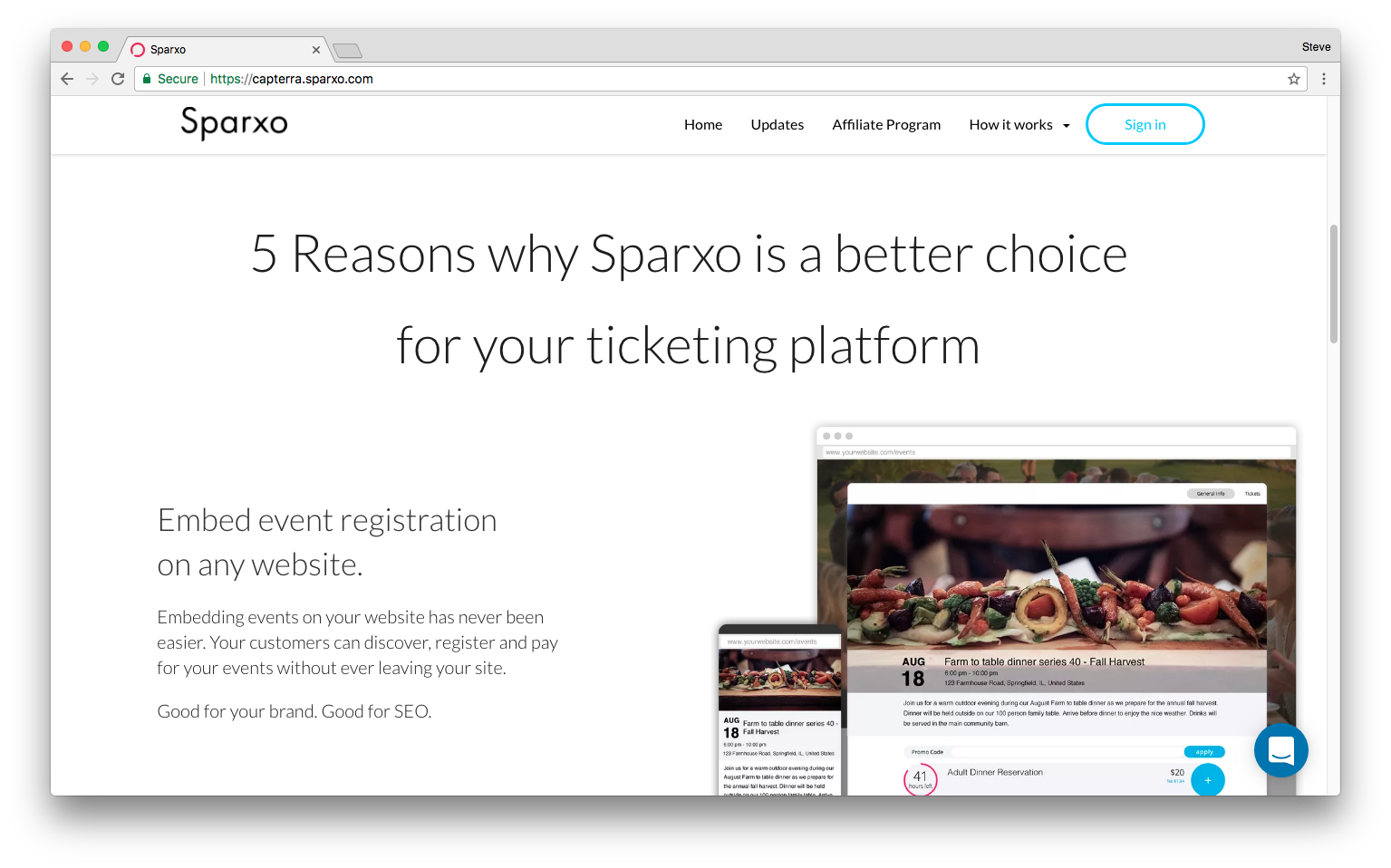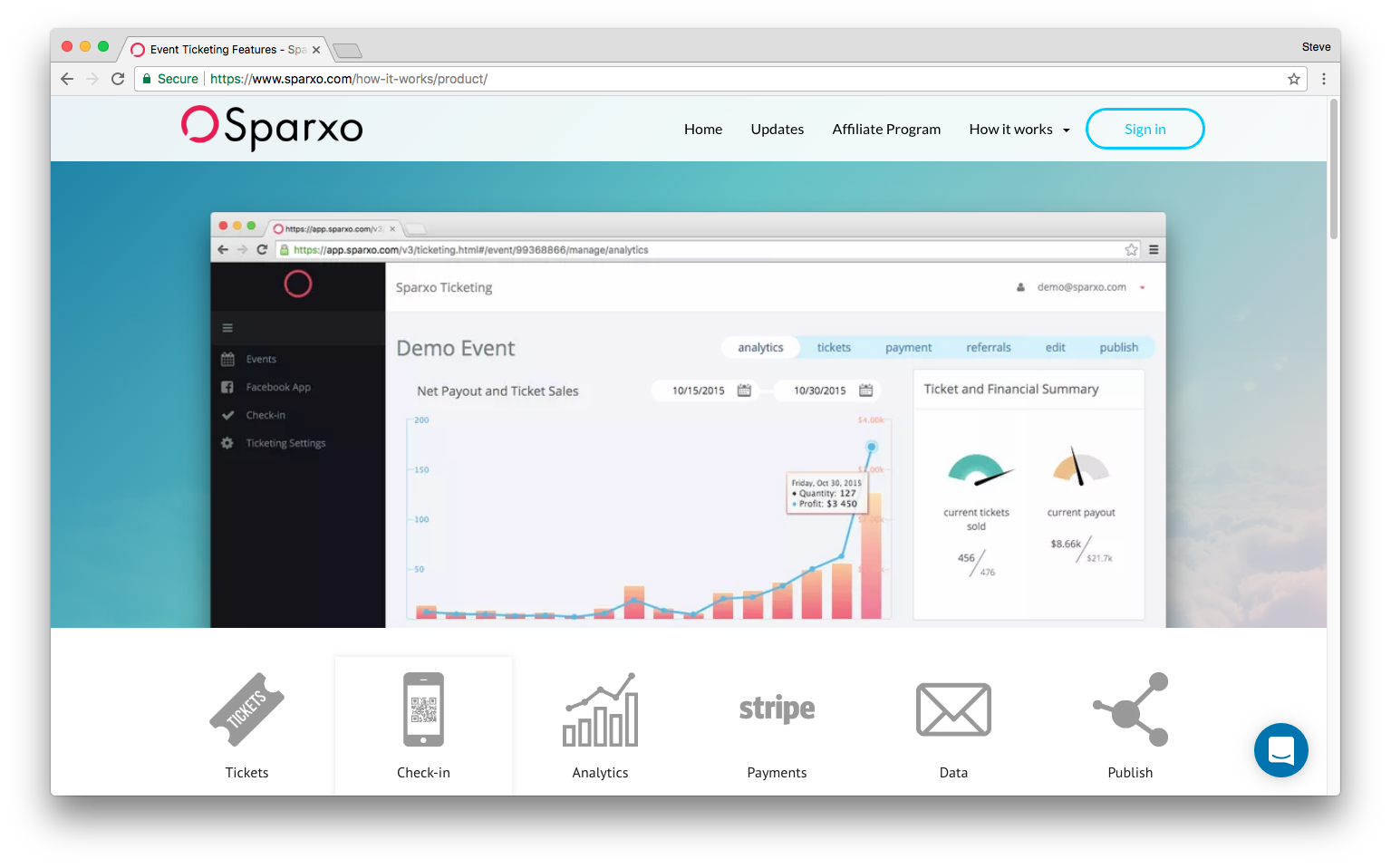 Sparxo is a ticketing product in a crowded space. The main differentiator is a white labeled check out flow that can be embedded on any website. Early market tests shown that event producers that produced unique events loved the concept of white labeling. However, they would not switch to a system that stood out in one area and lacked in basic features of a ticketing system.
